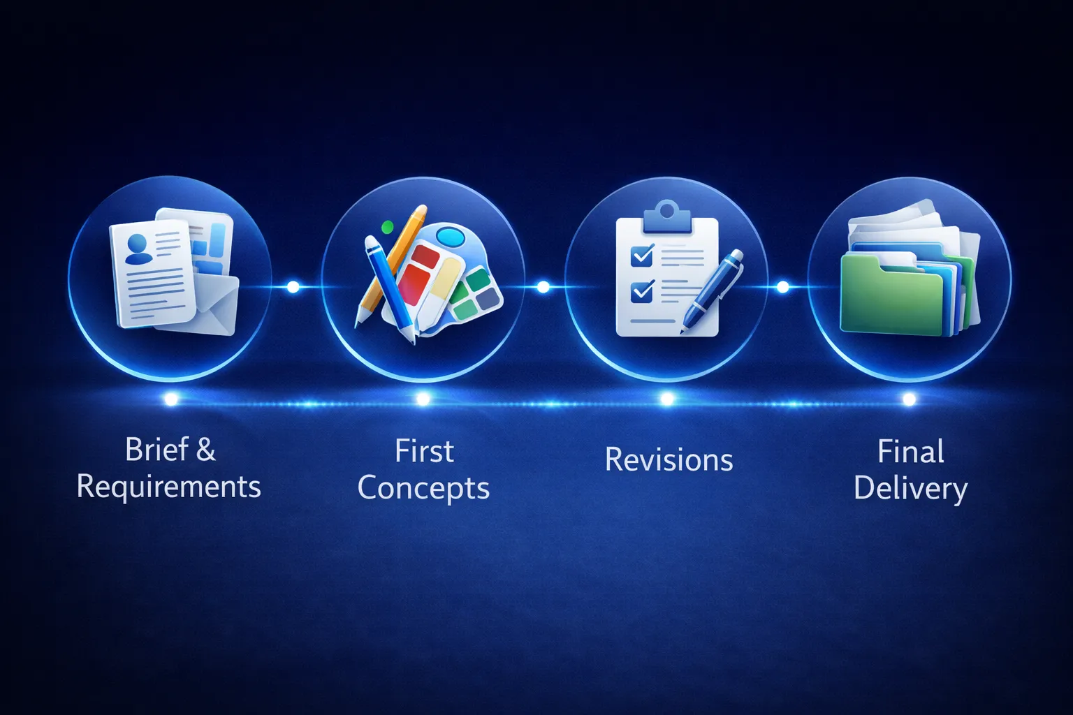 Designed with your logo, brand colours, sizes & print specifications. The layout, size, margins/bleed, and finish of each item are set according to your printing needs. You receive the final files in a print-ready format.