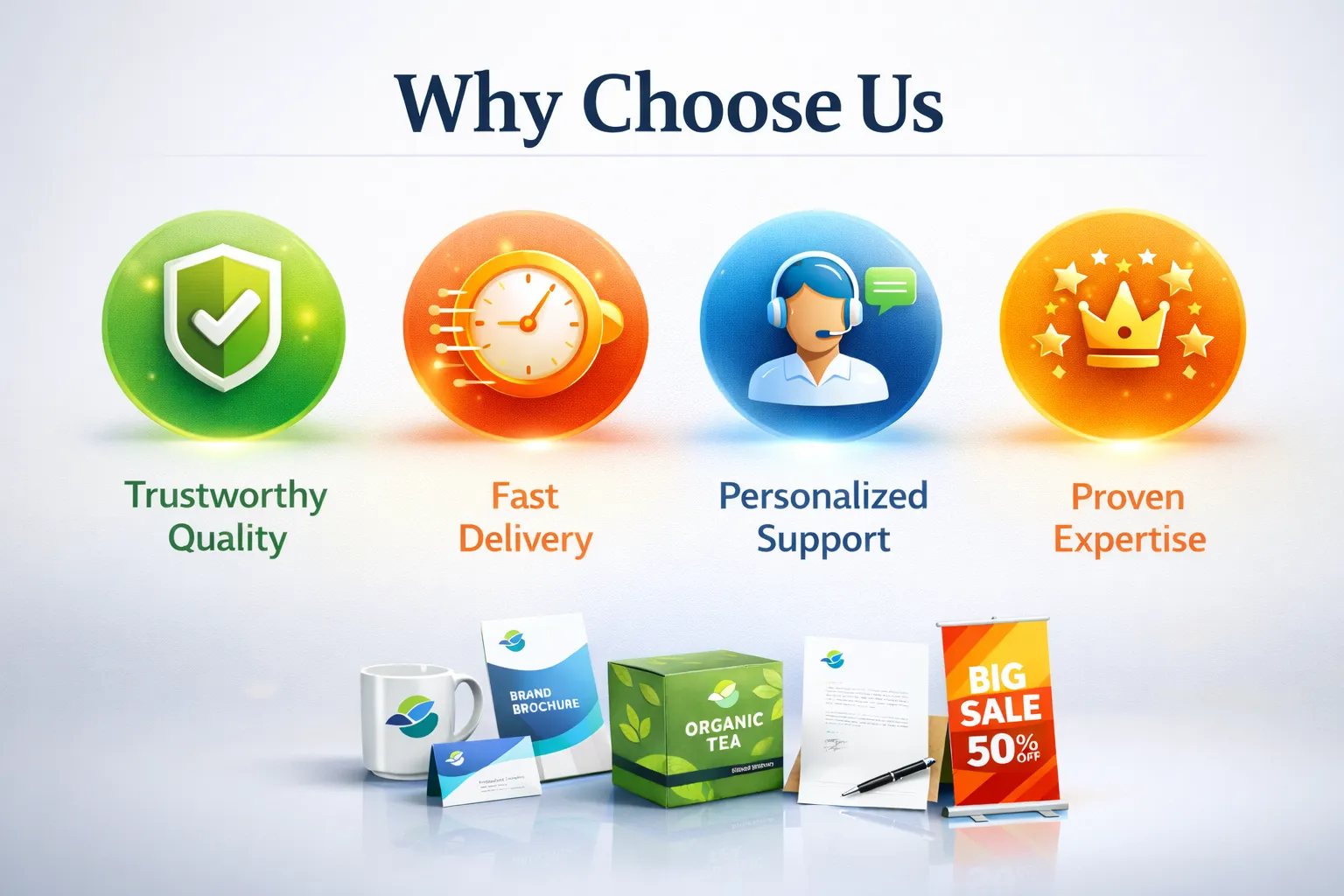 From paper bags, envelopes, stickers, and business cards to brochures, booklets, banners, flyers, bill books, garment tags, and customised packaging—every design is tailored to your brand identity. We carefully match your colours, fonts, and style so your customers instantly recognise your business across all materials.